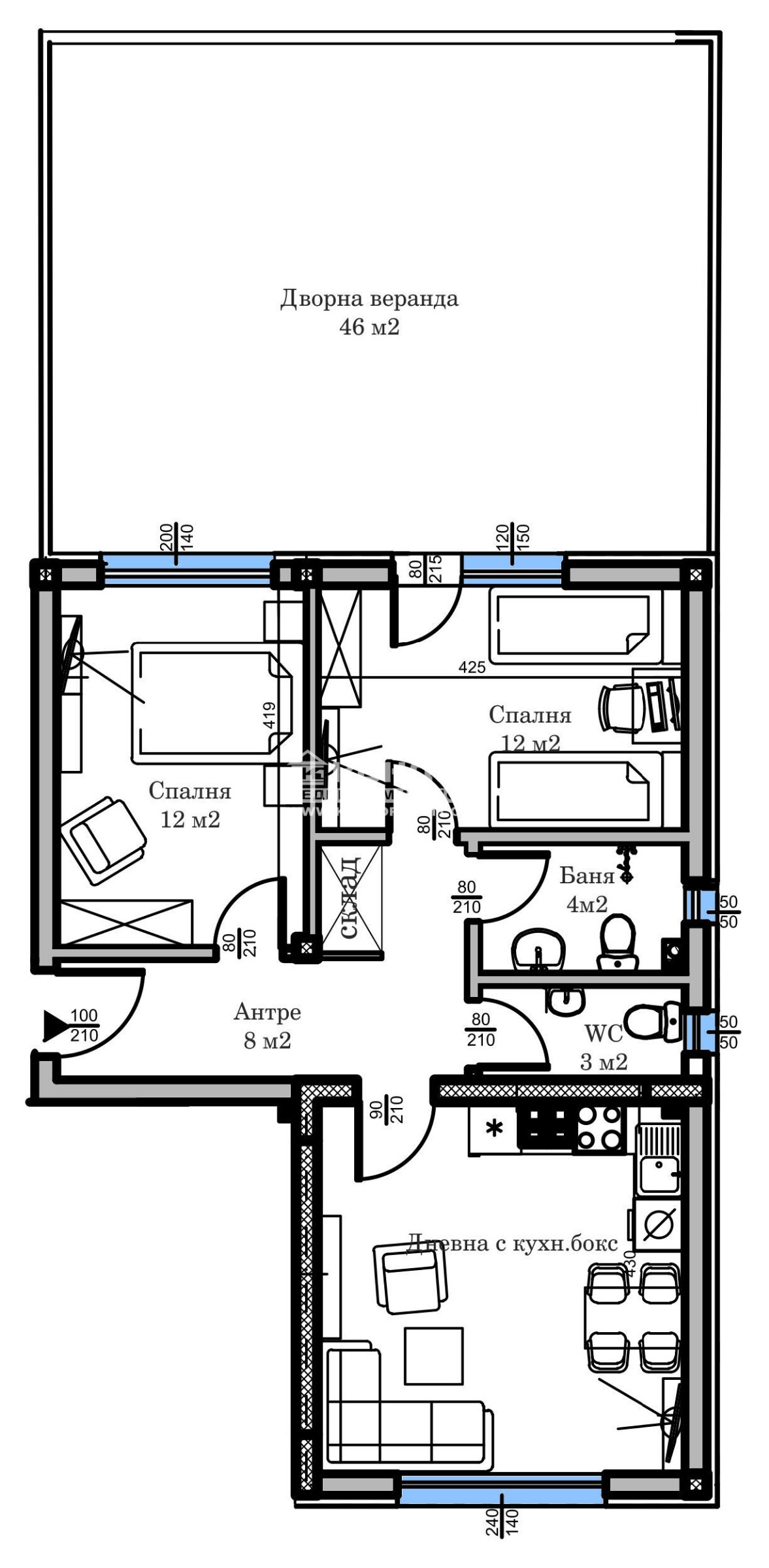 Оферта 66520: Представяме Ви тристаен апартамент в новоизградена малка и луксозна сграда, разположена в един от най-желаните и бързо развиващи се квартали в близост до Гребна база и всички основни комуникации. Жилището се състои от дневна с кухненски бокс, две самостоятелни спални по 12кв.м., баня с тоалетна, втора тоалетна, широко входно антре, склад/перално и собствен двор. Изпълнението ще се осъществява с висококачествени материали и съвременни технологии, по европейски стандарт, шесткамерна PVC дограма, блиндирана входна врата с 4-странно заключване, сензорно осветление, хидравлични асансьори с огледална кабина !!! Свободни външни паркоместа и опция за закупуване на Подземен Гараж. Обектът е изпълнен от фирма с доказан опит, като разполагаме с готови сгради и можем да Ви покажем качеството на изпълнение, което се осъществява с висококачествени материали и съвременни технологии, по европейски стандарт, петкамерна PVC дограма, червена Австрийска Тухла, масивна Блиндирана входна врата с 4-странно заключване, сензорно осветление, хидравлични асансьори с огледална кабина. Възможност за Закупуване чрез Банков Кредит или разсрочено изплащане по време на строителството. Възползвайте се от възможността да живеете в малка сграда на спокойно място !!!
