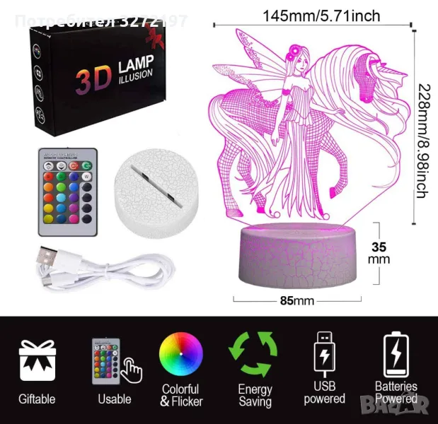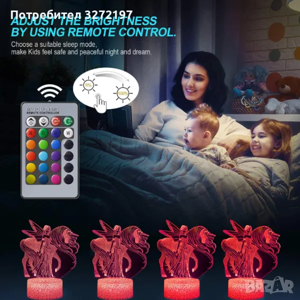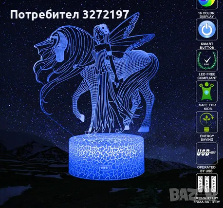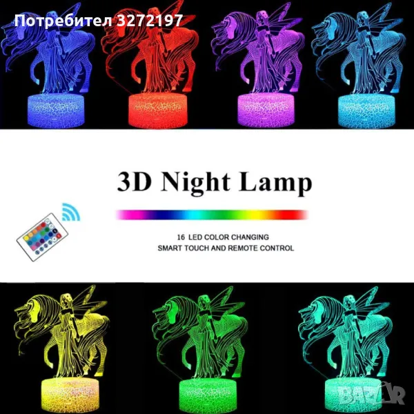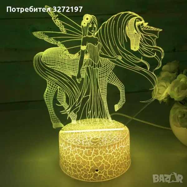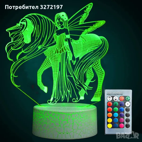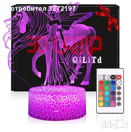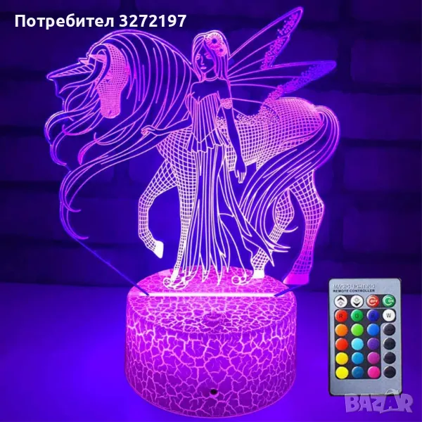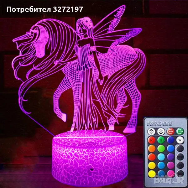 Холограмна 3DLED лампа Еднорог и Принцеса-дистанционно управление 16цвята+други режими на управление