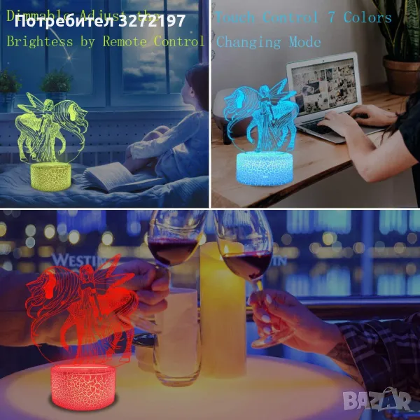 Холограмна 3D LED лампа Еднорог и Принцеса-дистанционно управление 16 цвята+други режими на управление