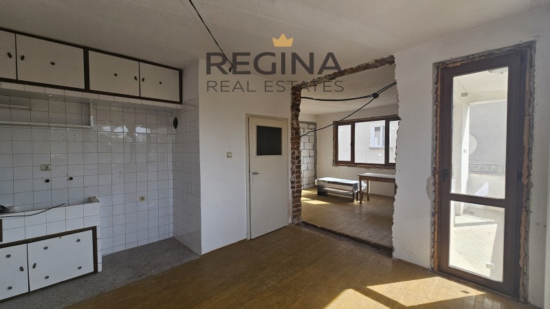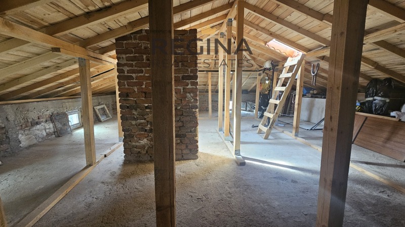Бутик за имоти Реджина продава ексклузивно 2-ри етаж от масивна тухлена къща в гр.Хисаря със застроена площ 91 кв. м. Състои се от: коридор, трапезария с кухненски бокс и хол със западна тераса, спалня с дрешник и още стая, която може да се обособи като санитарен възел с перално помещение или втора спалня. В момента двата етажа са с общ вход като има възможност за обособяването на самостоятелен достъп до етажа. Жилището е с подменена италианска PVC дограма, а покривът на къщата е напълно нов. Имотът се продава с ½ идеална част дворно място с площ 421 кв.м от целия парцел, който е 842 кв. м и ½ идеална част от таванското помещение.