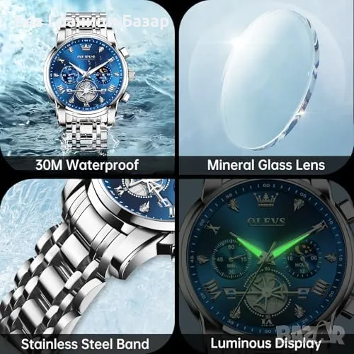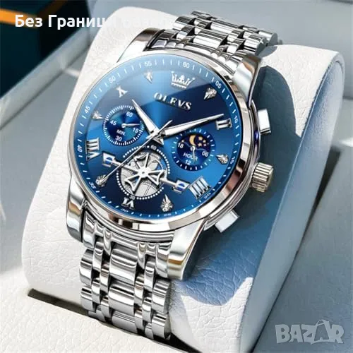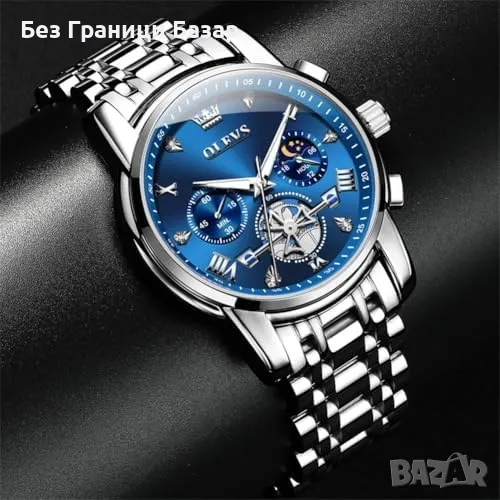 Нов Мъжки хронограф часовник неръждаема стомана водоустойчив аксесоар