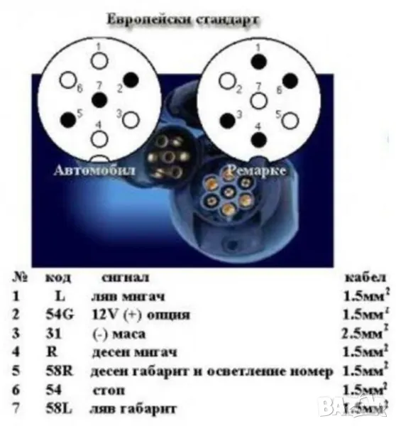 Налични последни 2 различни комплекти. Цените са фиксирани за 1 к-т (вижте опис и снимки). К-т Букса с кабел или К-т Конектори за автомобил и ремарке. Възможен БАРТЕР.