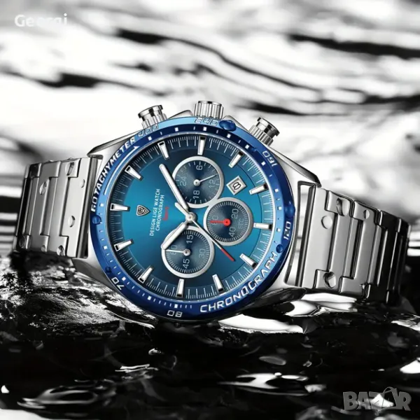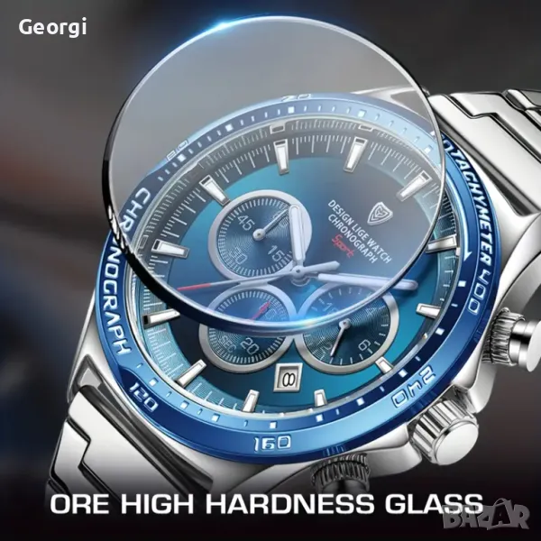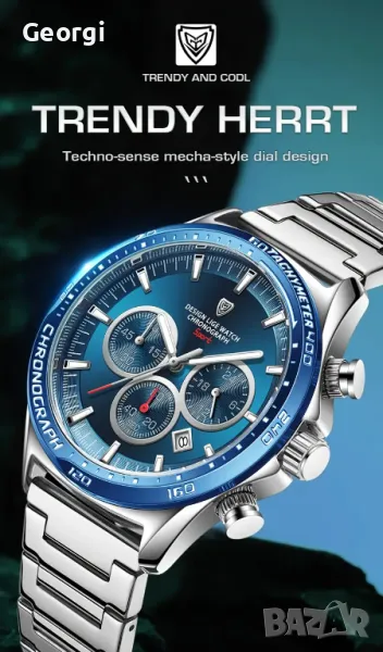 Хронограф със сребриста (неръждаема стоманена) каишка и модерен син циферблат!