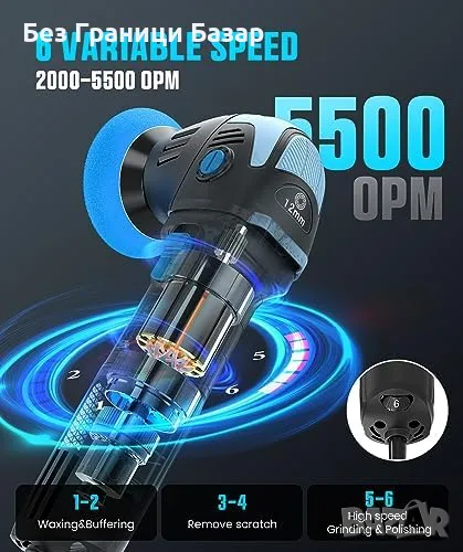6 регулируеми скорости (2000-5500 OPM) за прецизен контрол.