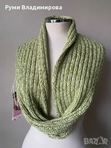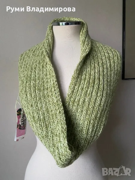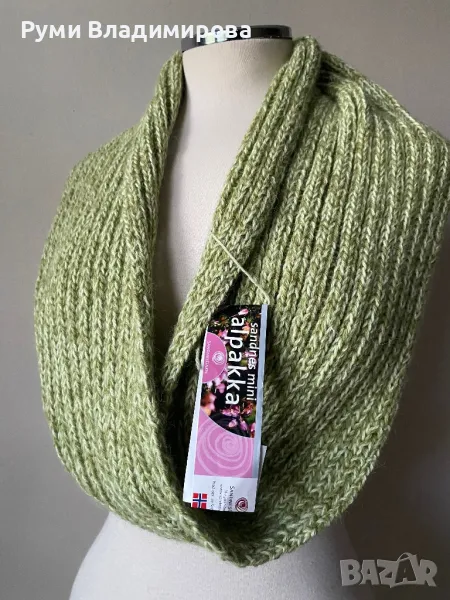 Светлозелен шал от 100 % алпака, Sandnes garn, тип яка, десен плетиво, норвежка марка, мноко качествена и топла материя - alpaca, нов, с етикет, доставка с Еконт.