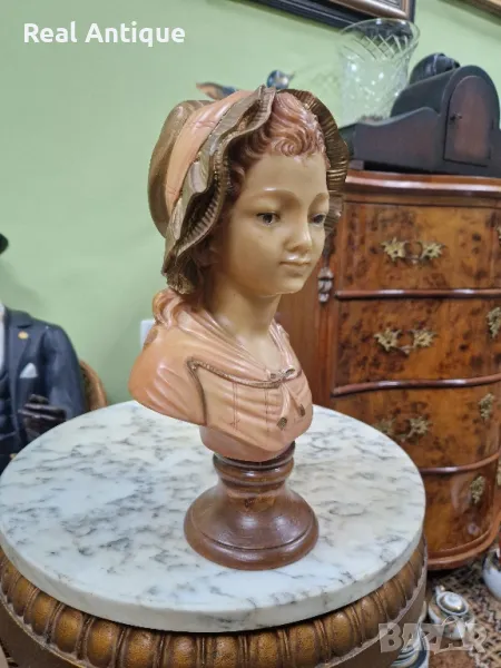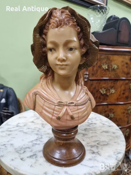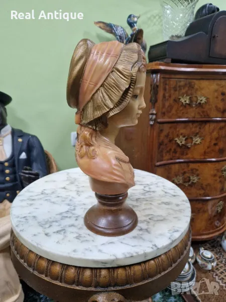 Продавам прекрасен антикварен колекционерски бюст в перфектно състояние без никакви забележки. Материал алабастър смола с основа от дърво. Височина 30 см. Прекрасно допълнение към интериора на Вашия дом офис вила ресторант хотел . Подходящ и за подарък . Работя с всички куриери. Отговарям бързо.