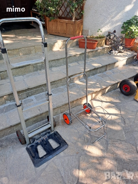 Продавам 3 бр. количка внос от Германия. Едната количка е сгъваема производство на датската фирма Ravendo, много здрава изработка. Цената е 100 лв.Другата е алуминиева 200 кг. немска цена 180 лв.Малката е сгъваема цената е 20лв.