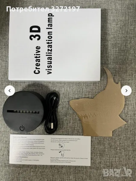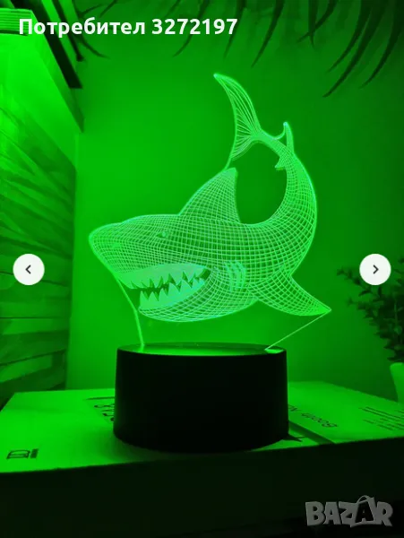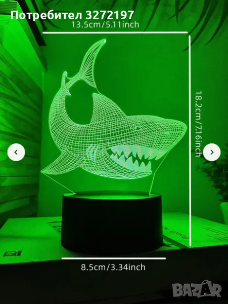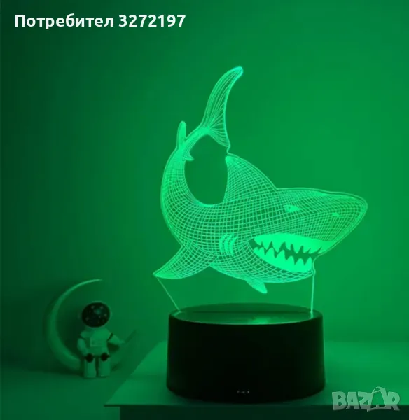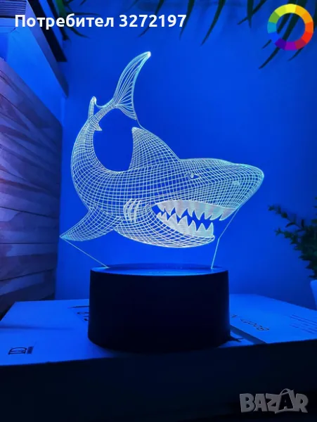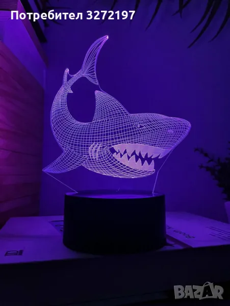 Холограмна 3D LED лампа Акула,RGB Седемцветен Интелигентен Контрол,USB/батерия.