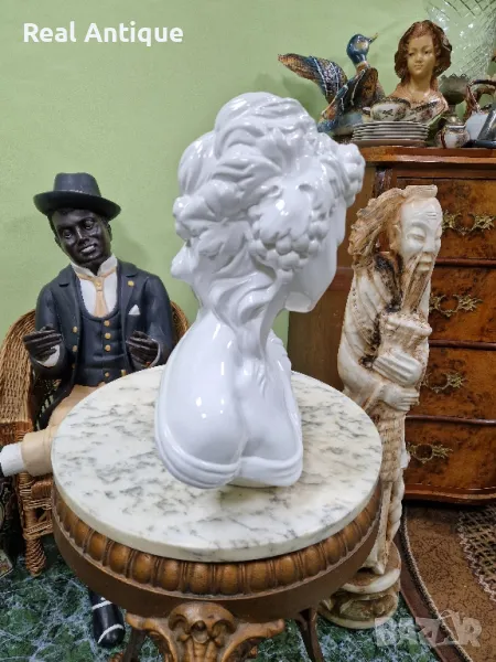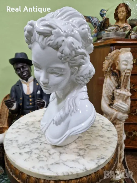 Продавам уникален изключително красив антикварен колекционерски порцеланов бюст фигура статуетка барок в перфектно състояние. Височина 37 см ширина 26 см. Прекрасно допълнение към интериора на Вашия дом офис вила ресторант хотел. Подходящ и за подарък. Работя с всички куриери. Отговарям бързо.