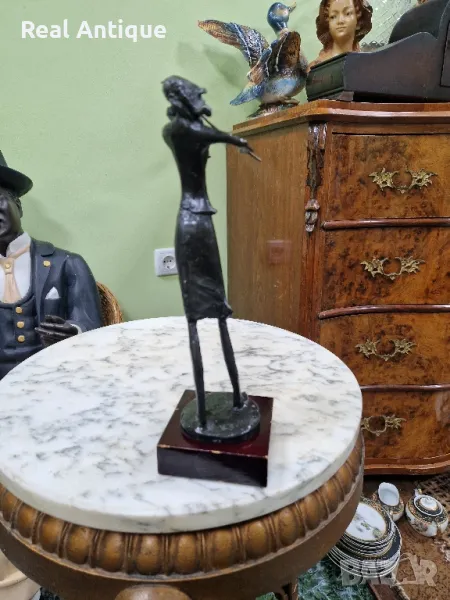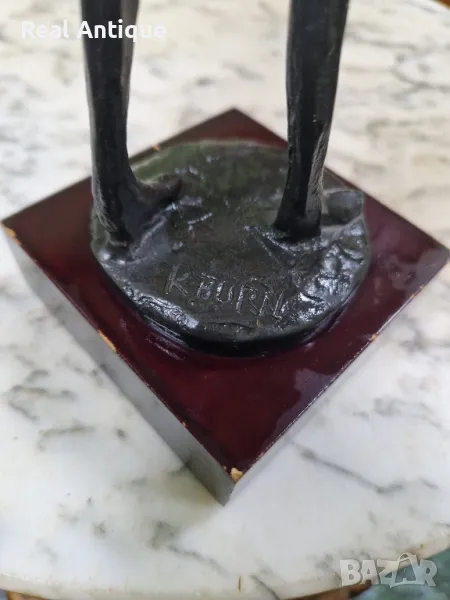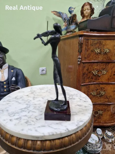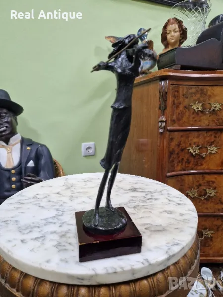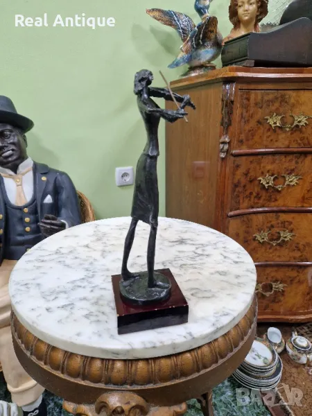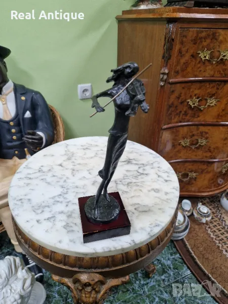 Продавам страхотна антикварна авторска колекционерска бронзова фигура статуетка пластика в перфектно състояние без никакви забележки с наличните маркировки. Височина 30 см. Прекрасно допълнение към интериора на Вашия дом офис вила ресторант хотел. Подходяща и за подарък. Работя с всички куриери. Отговарям бързо.