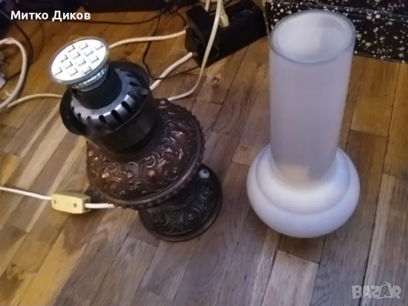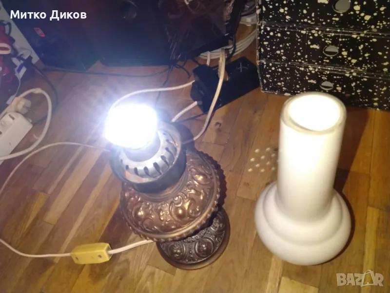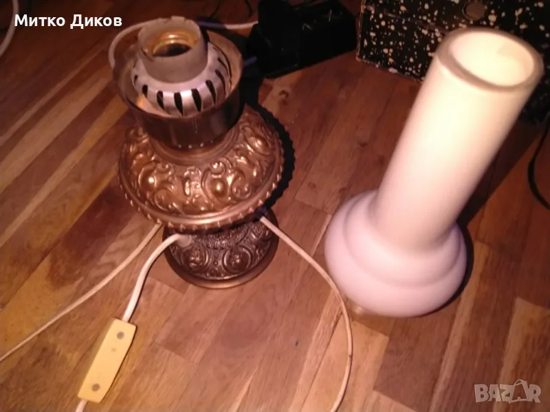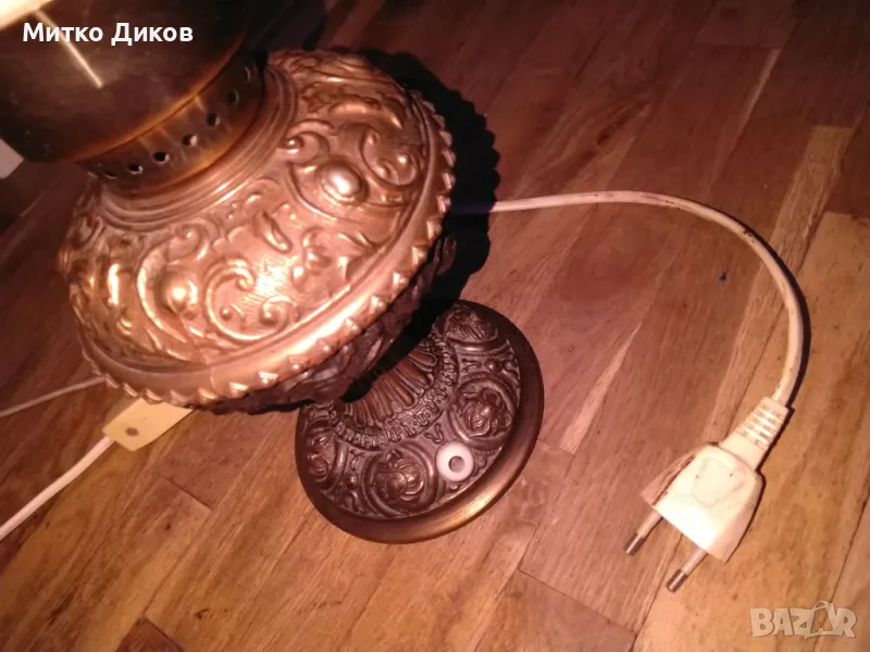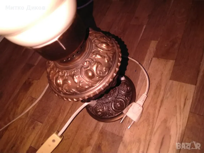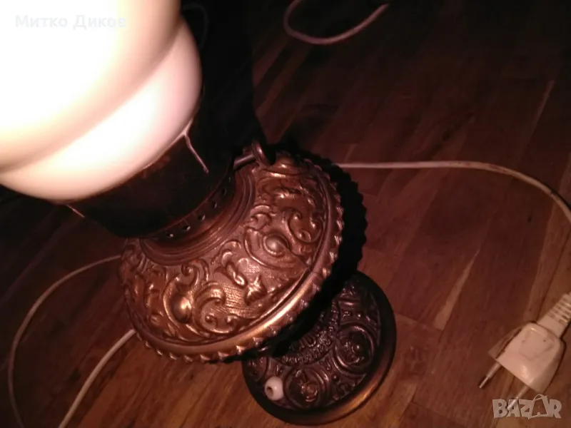 Лампа настолна ретро елект. винтидж бронз.основа около 3кг работи Н-50см фи 135 мм и на плафона 26см → Обява 49486281
