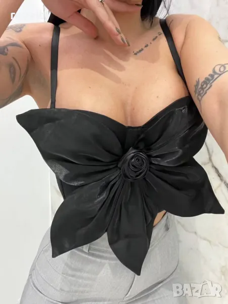 Дамски черен топ с ефектно черно цвете , снимка 1 - Корсети, бюстиета, топове - 49486478 Дамски черен топ с ефектно черно цвете , снимка 2 - Корсети, бюстиета, топове - 49486478 Дамски черен топ с ефектно черно цвете , снимка 3 - Корсети, бюстиета, топове - 49486478 1/3