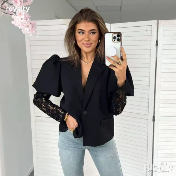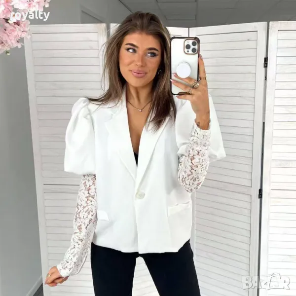 Дамско сако с дантелен ръкав Различни цветове → Обява 49486587