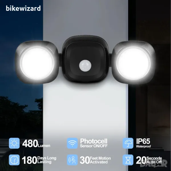 Чувствителен и по-мощен Външната стенна лампа TOOWELL е оборудвана с надграден чип за откриване на движение и подобрен ъгъл на засичане, използва надградена технология за безжично предаване и има вграден PLR сензор за движение с висока чувствителност. Той може да открие до 180° с по-голяма дължина на сензора от 30° и по този начин предлага по-голяма осветена площ. Режим на осветление със сензор за движение: благодарение на усъвършенствания и чувствителен фотоелектричен сензор, стенната лампа на батерията се активира на открито и се включва за 20 секунди (ако околната светлина е по-малка от 15 лукса). Стои затворен през деня (засича движение само на тъмно). ЕФЕКТИВНА ВЪНШНА СВЕТЛИНА С БАТЕРИЯ: Външната светлина със сензор за движение има мощност от 4,5 W, 480 лумена и 5000 K (дневна светлина), еквивалентна на 50 W халогенна светлина. Новата 4D батерия може да предложи 180 дни живот на батерията, спестявайки ви до 80% от сметките ви за електричество. (Продуктът не съдържа батерии)