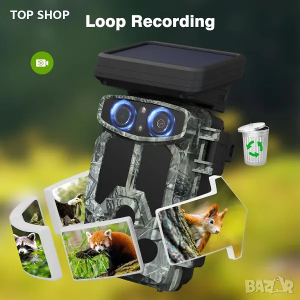TC07 Wildlife Camera разполага с функция за нощно виждане на звездна светлина за жива фотография при слаба светлина, усъвършенствана система с двоен обектив за независима работа през деня и нощта, заснемане на 4K видео и 60MP изображения със сензор Sony IMX458. Той предлага слънчева енергия с панел от 5000 mAh и двойни опции за захранване, гарантиращи непрекъсната работа и екологичност. Камерата поддържа WiFi и Bluetooth свързаност с контрол на приложението за лесно управление и преглед. Усъвършенстваната видео компресия H.265 спестява място за съхранение, а цикличният запис предотвратява загубата на данни. Той включва 120° широкоъгълен обектив, персонализирани настройки, защита с парола, обхват на нощно виждане от 20 метра и инфрачервено активиране на движение, подходящи за различни приложения като лов, наблюдение на диви животни и домашна сигурност.