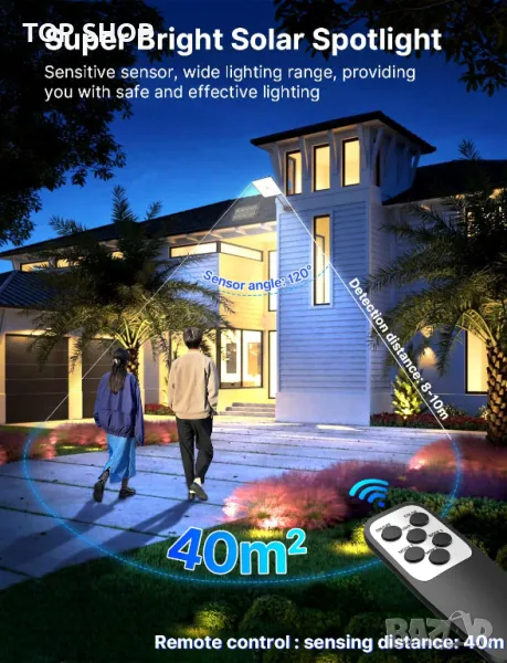 Mexllex 163LED охранителна лампа с отделен соларен панел, сензор за движение, USB,IP65, дистанционно