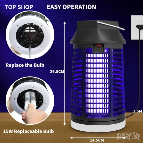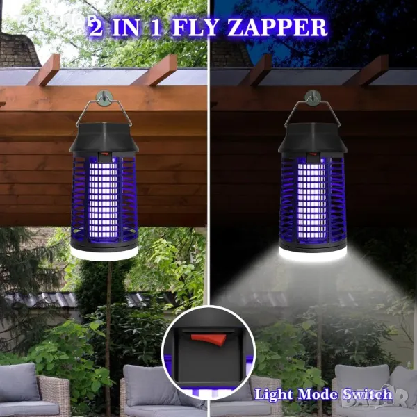 Лампа за унищожаване на комари, 2 в 1 уред за насекоми 4200V 15W UV