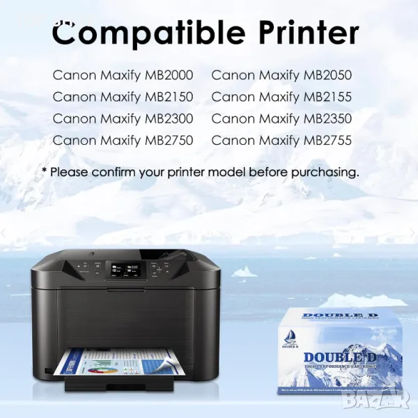 Касетите с мастило DOUBUL D 1500XL са проектирани като перфектен заместител на касетите с мастило за принтер Canon PGI-1500, PGI1500XL и 1500 XL, като осигуряват 100% съвместимост с широка гама принтери от серия Canon Maxify, включително модели MB-2350, MB-2050 , MB-2300, MB-2000, MB-2150, MB-2755, MB-2155, MB-2750 и техните вариации. Тази групова опаковка включва 2 черни, 1 циан, 1 магента и 1 жълта касета, общо 5 опаковки. Касетите се отличават с висок капацитет на страници, с до 1200 страници за черно и 800 страници за всяка цветна касета при 5% покритие на хартия A4. Те са създадени да произвеждат живи цветове и да осигурят изключително качество на печат, гарантирайки удебелени и ясни текстове и ясни документи.