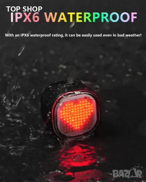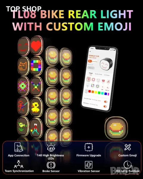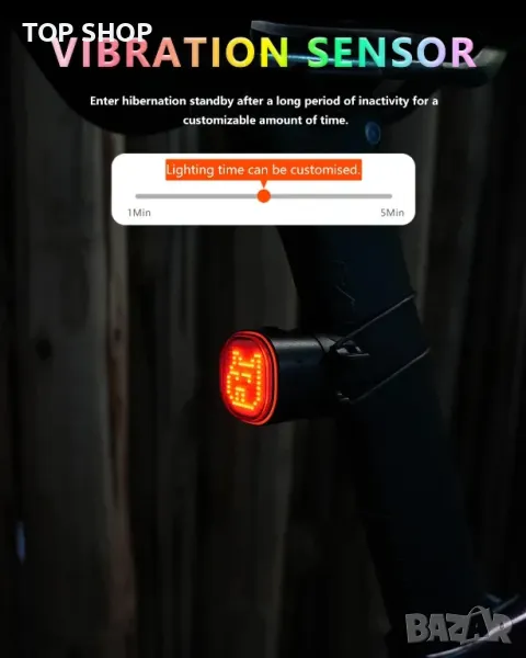 Лесно персонализирайте моделите, яркостта, цветовете и скоростта на мигане на задните светлини за велосипед TL08 чрез приложението, което също позволява синхронизиране на екипа за динамично съвпадение на изражението в рамките на 30 метра. Сензор за вибрации поставя светлината в режим на готовност по време на неактивност и я събужда при движение с регулируеми периоди на неактивност. Спирачният сензор повишава безопасността, като осветява светлината при спиране с персонализирана продължителност. Отличаващ се с USB-C зареждане, до 30 часа време на работа, IPX6 хидроизолация за използване при всякакви метеорологични условия и два лесни метода за инсталиране, това е универсална и надеждна опция за велосипедисти.