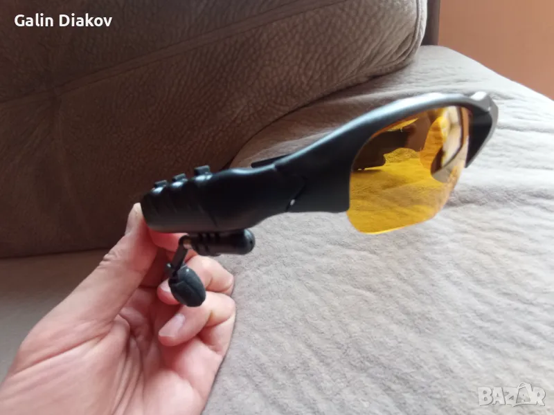 Многофункционални очила за спорт и шофиране с вградени безжични слушалки и микрофон. Лесно сдвояване с телефон, благодарение на което могат да се водят разговори при шофиране, тичане, колоездене и всякакви други дейности. 55mAh батерия с usb С зареждане и включен кабел в комплекта. Очилата са с контрастни жълти плаки предназначени за нощно шофиране при слаба светлина. Чистно нови.