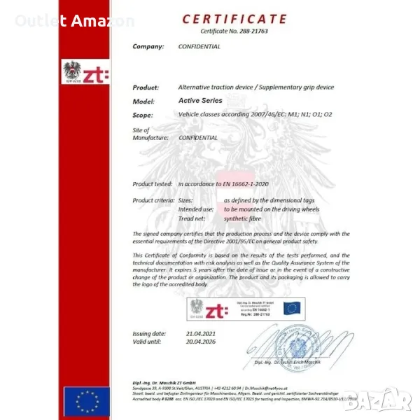 Хомологирани съгласно стандарта EN 16662-1:2020, текстилните противоплъзгащи покрития DAC Active Series 3D отговарят на европейските изисквания за безопасност и производителност, осигурявайки оптимално сцепление върху сняг и лед. Проектирани за съвместимост с различни видове превозни средства, те предлагат ефективна употреба, без да повреждат гумите и отговарят на законовите разпоредби в целия ЕС. Практически в страни като Германия, Франция, Италия металните вериги могат да бъдат заменени с противоплъзгащи се капаци.