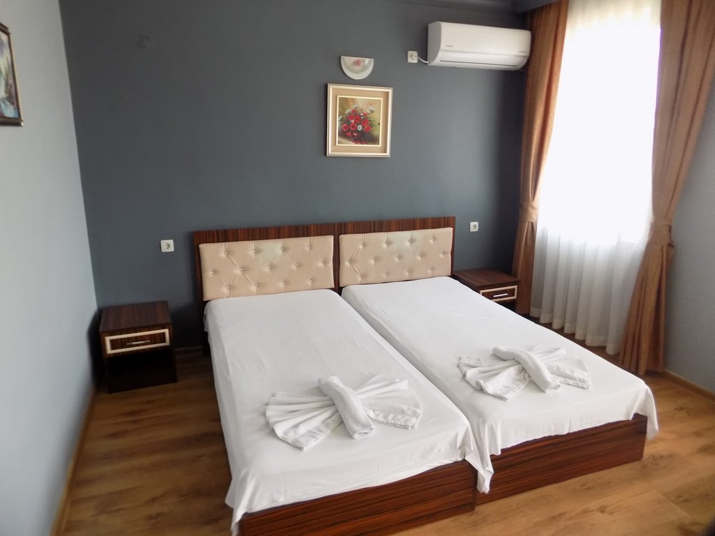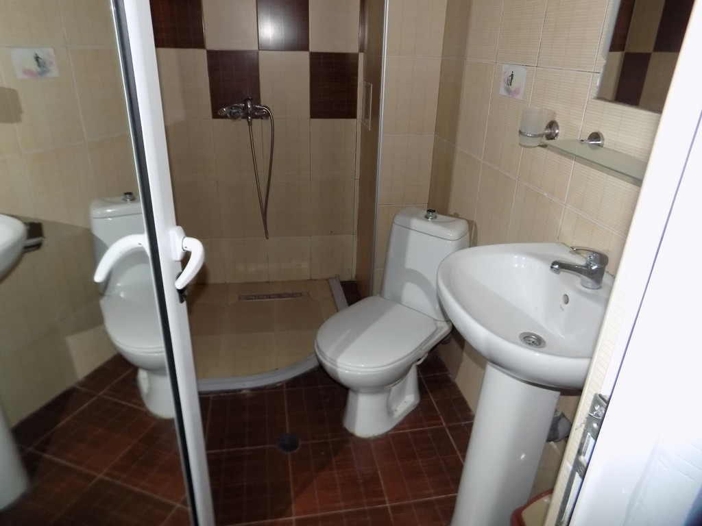 Предлагаме Ви къща за гости под наем в широкия Център на град Кърджали, в района на Пазара, само на няколко минути разстояние от парк Пентагона. Къщата е на три етажа и е с РЗП 442 кв.м и прилежащ парцел от 357 кв.м. кв.м. На първият етаж им апартамент, спалня и барче. На горните два етажа има общо 8 стаи /по четири стаи на етаж/. Всяка стая има самостоятелен санитарен възел, климатик, телевизор с кабелна телевизия, две или три легла, нощни шкафчета и гардероб. Някои от стаите са с тераси, от които се открива прекрасна гледка към града и водното огледало. Към хотела има лоби бар, кухня и паркинг. Имота има всички необходими документи за експлоатация. При наемането на имота освен месечния наем, следва да се заплатят и два депозита. Наем: 4000 лева