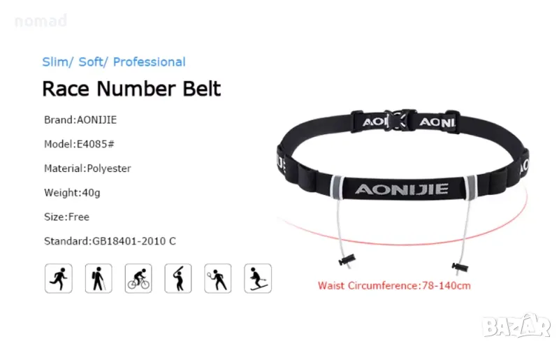 Колан за състезателен номер и гелове AONIJIE I Бягане, триатлон