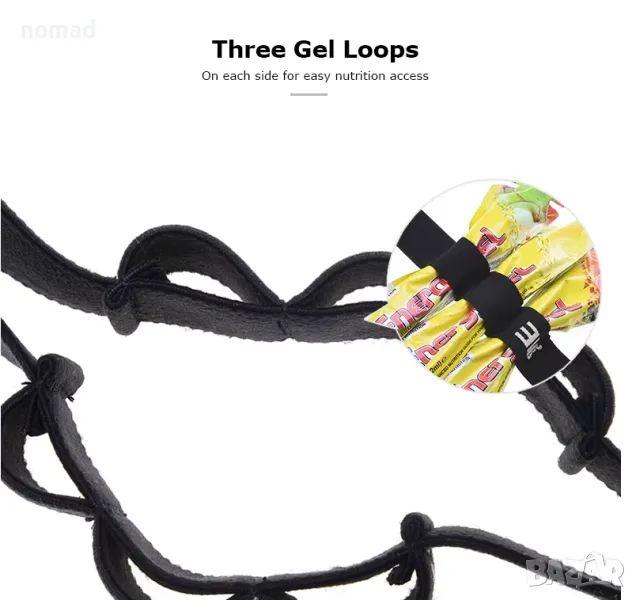 - Специални примки за 6 гела – удобно съхранение на енергийни блокчета
