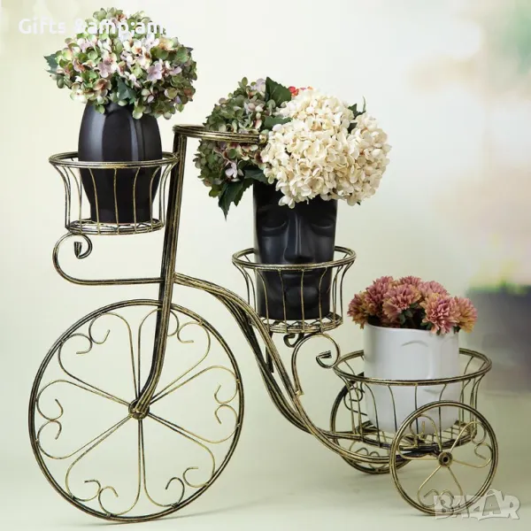 Поставка за 3 саксии - Велосипед, метална в златно, снимка 1 - Други - 49490251 Поставка за 3 саксии - Велосипед, метална в златно, снимка 2 - Други - 49490251 1/2