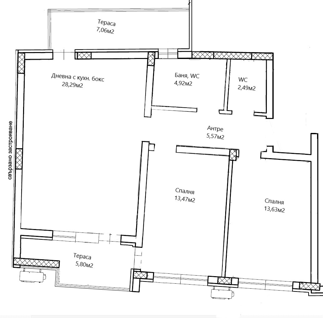 Оферта 82840Б Предлагаме Ви тристаен апартамент пред Акт 14, в нова модерна сграда, на изключително комуникативно място в района на кв. Въстанически. Жилището се намира на втори етаж и е с площ от 123 кв.м. Имотът има следното разпределение: