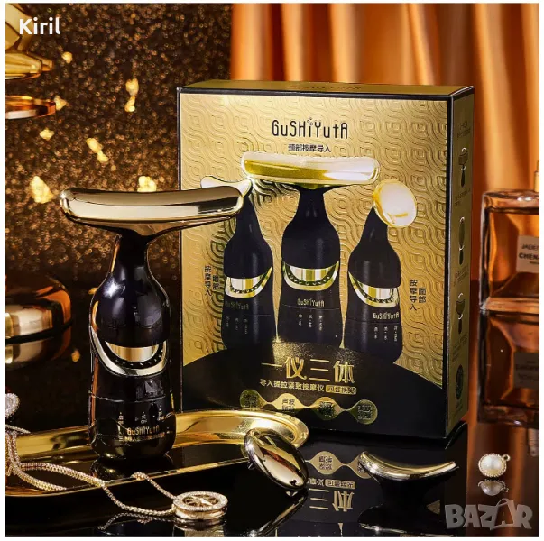 Открийте удоволствието да релаксирате у дома с нашия уред за масаж 3 в 1, идеален за вашата шия, лице и очите. Това елегантно черно устройство предлага луксозно масажно изживяване, съчетавайки модерна технология с ергономичен дизайн. С три специализирани масажиращи глави (шия, лице, очи), този уред ви предлага възможност да релаксирате и същевременно да подобрите вида на кожата си. Независимо дали искате да се отървете от напрежението във врата, да намалите появата на бръчки или да съживите зоната около очите, този уред е идеалният избор за вас. Усъвършенствана масажна технология Усъвършенствана масажна технология за осигуряване на дълбока релаксация и ревитализиране на кожата. Ергономичен дизайн - Удобно и лесно използване на устройството което ви позволява да се наслаждавате на масажа, без да се уморявате прекалено много 3 масажни глави - Устройството е оборудвано с три специализирани масажни глави за шията, лицето и очите, всяка от които е предназначена да осигури деликатно и ефективно докосване. Лечение против бръчки и лифтинг Нашият уред за масаж е предназначен да помогне за намаляване на появата на бръчки и да осигури лифтинг ефект, подобрявайки цялостния вид на кожата.