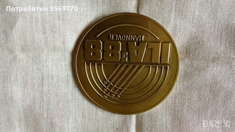 Рядък германски бронзов плакет, юбилеен 1988 г. по случай 30 години Летище Хановер. Размер 9х0,4 см, тегло 190 грама. Друг не се предлага в страната, в чужбина в мрежата се предлага само един на цена от 89 евро.