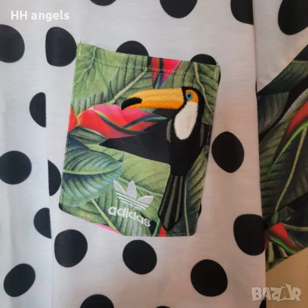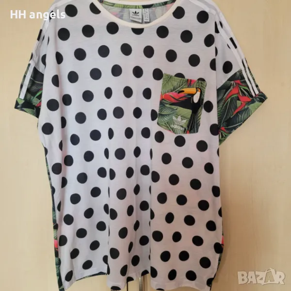 2.ПРОДАДЕНА!!!Adidas/Адидас originals,UK 16,oversize модел,100% полиестер с дължина 80 см и гръдна обиколка 132 см,с флорален гръб и флорални елементи,с бродиран Токан отпред на джобчето:)мн интересен модел 25лв.