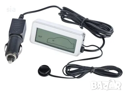 Електронен термометър за кола с LCD дисплей. Позволява ви да измервате външна и вътрешна температура с помощта на два независими температурни сензора. Захранва се от гнездото на запалката. код 1000051528