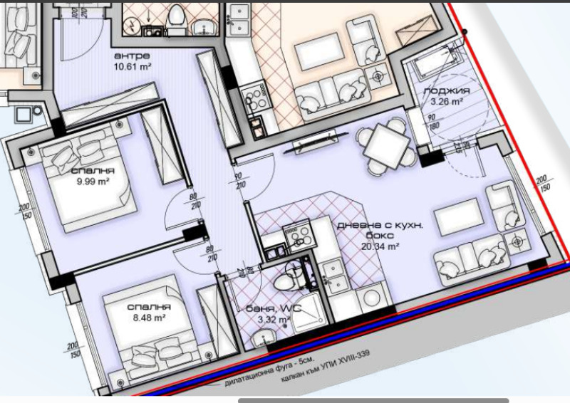 Пропърти Стор - Магазин за Имоти предлага за продажба СТРАХОТЕН 3-стаен апартамент в новострояща се сграда със следното разпределение: входно антре/коридор, дневна с кухненска част, 2 спални, баня с тоалет, тераса, маза.
