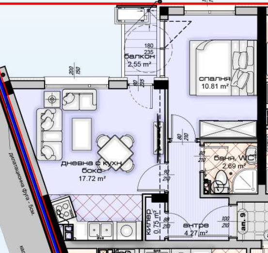 Пропърти Стор - Магазин за Имоти предлага за продажба 2-стаен апартамент в новострояща се сграда със следното разпределение: входно антре/коридор, дневна с кухненска част, спалня, баня с тоалет, тераса.