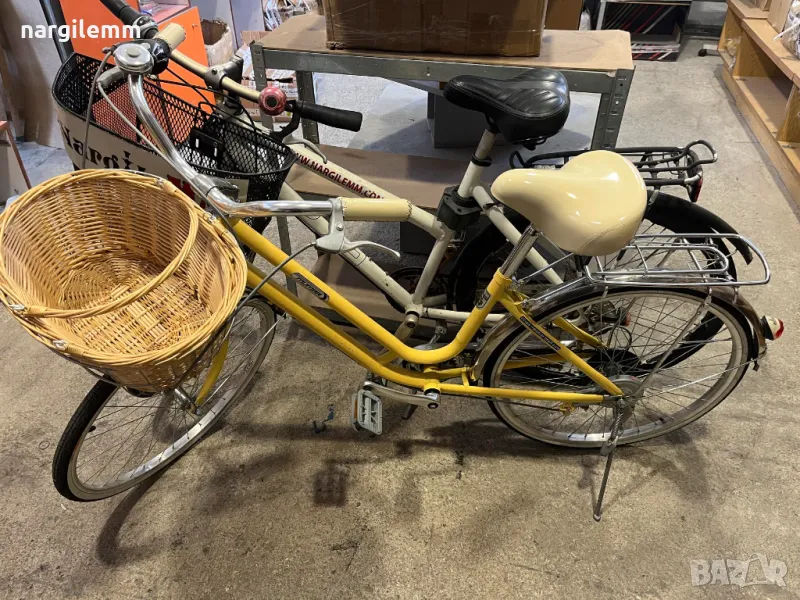 Продавам два велосипеда и двата с в много добро състояние едия велосипед е бяло с черно и отпред черна метална кошница , а другия е жълт модел е нов не е употребяван е с претена кошница отпред .