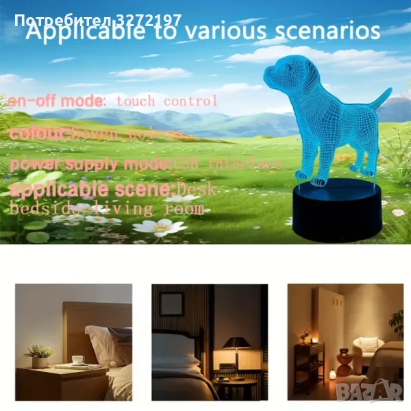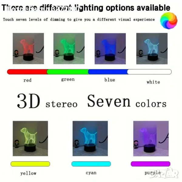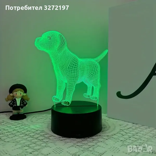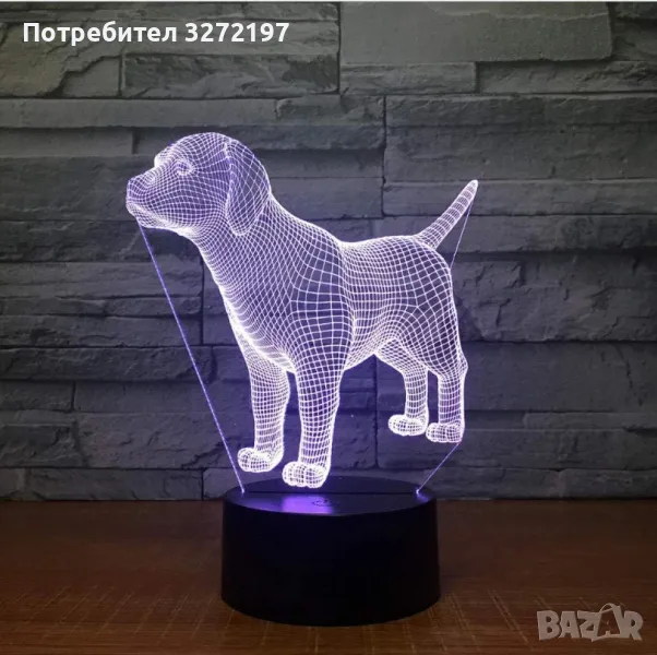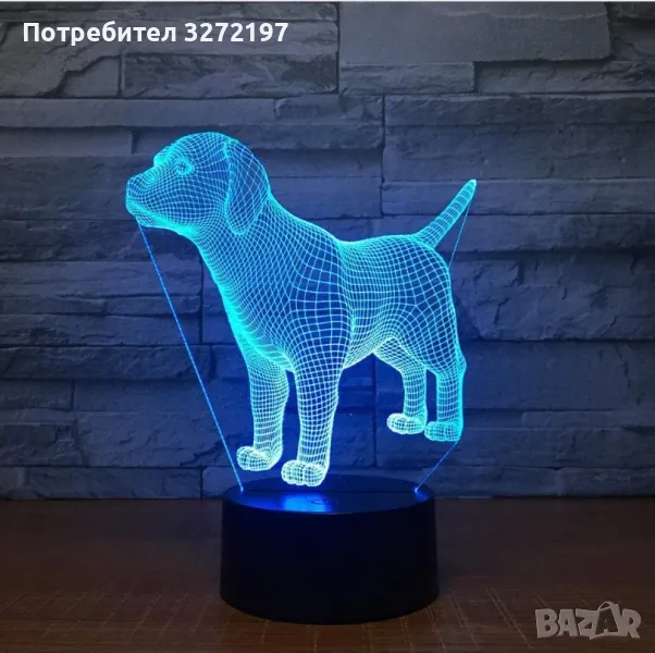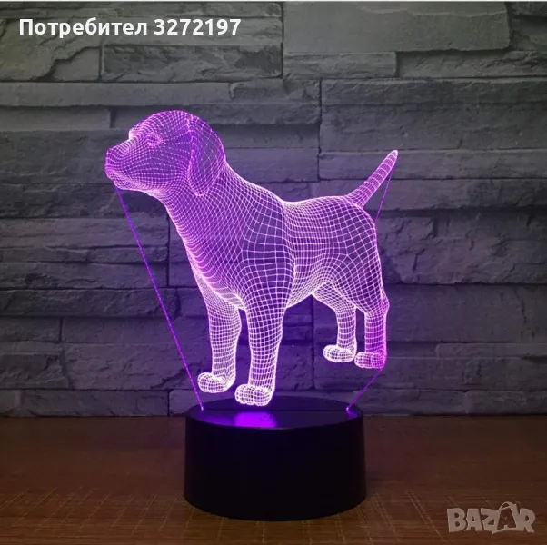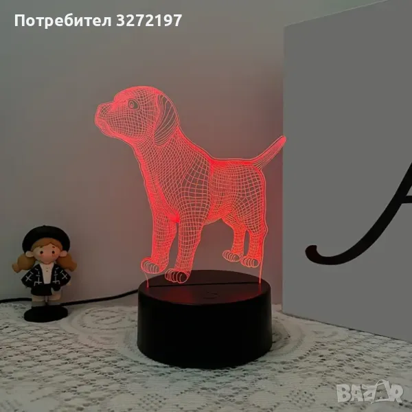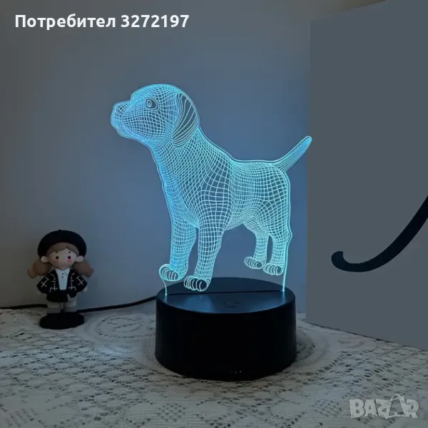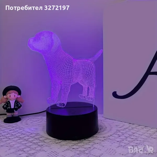 Холограмна 3D LED лампа Лабрадор,RGB Седемцветен Интелигентен Контрол,USB