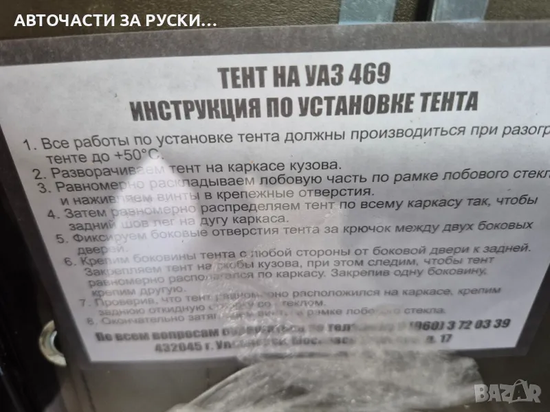 Брезент зелен УАЗ 469 нов наличен руски → Обява 49493001