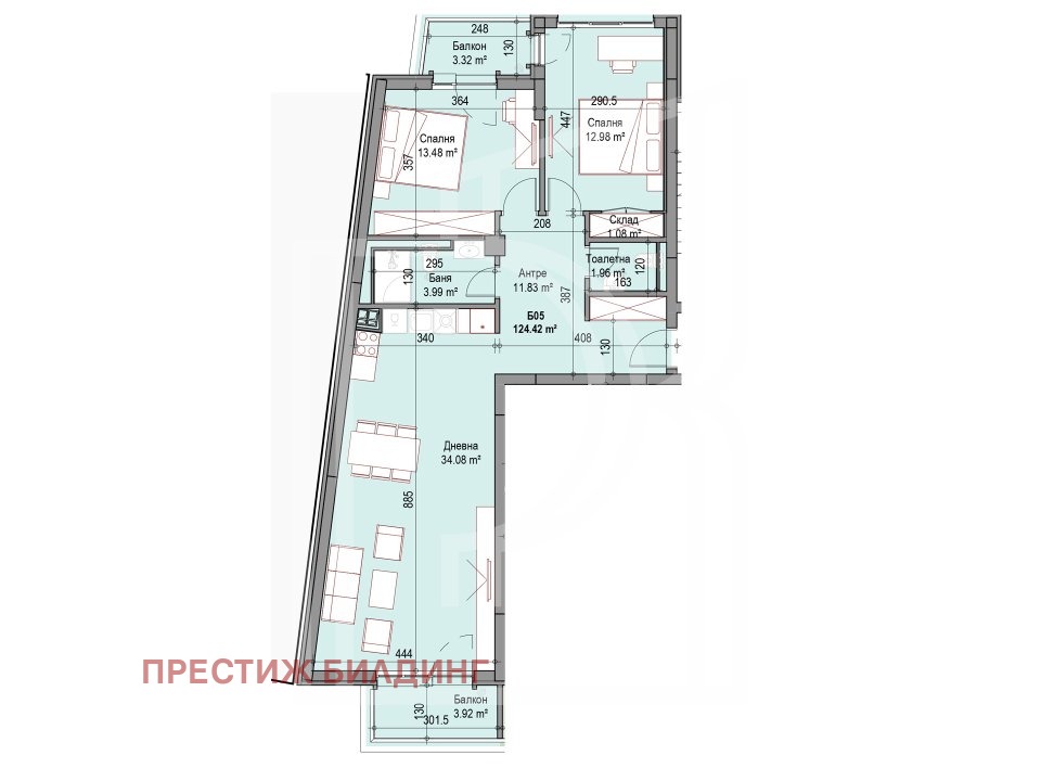 Обща площ 124.42 м2