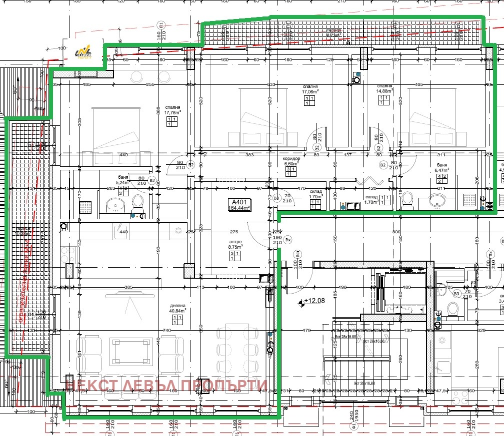 Агенция 'НЕКСТ ЛЕВЪЛ ПРОПЪРТИ' предлага на Вашето внимание четиристаен апартамент със следното разпределение: Антре, коридор, дневна с трапезария, кухня, три спални, две бани с тоалетна, два склада/мокро помещение и две тераси.