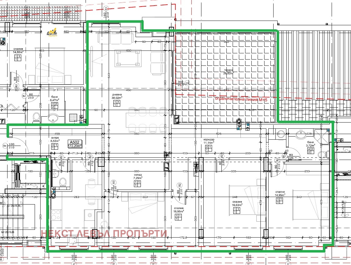 ЗП: 172.20м2 ; Мазе: 4.98м2 ; РЗП: 209.75м2