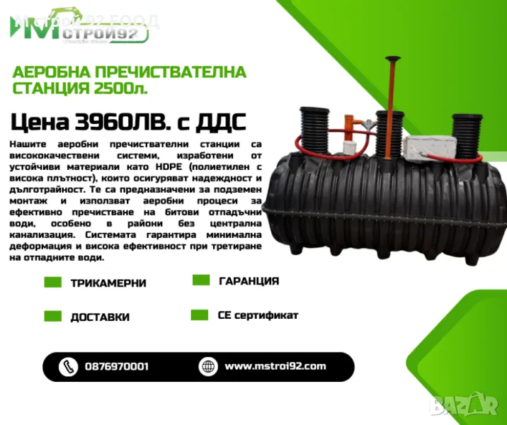 Вертикална Пречиствателна станция 2.5м3 до 6 човека - 4300лв