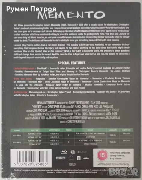 LUXURY SPECIAL EDITION - нов Blu Ray Steelbook - МЕМЕНТО - MEMENTO - без БГ субтитри, снимка 1 - Blu-Ray филми - 49494476 LUXURY SPECIAL EDITION - нов Blu Ray Steelbook - МЕМЕНТО - MEMENTO - без БГ субтитри, снимка 2 - Blu-Ray филми - 49494476 LUXURY SPECIAL EDITION - нов Blu Ray Steelbook - МЕМЕНТО - MEMENTO - без БГ субтитри, снимка 3 - Blu-Ray филми - 49494476 LUXURY SPECIAL EDITION - нов Blu Ray Steelbook - МЕМЕНТО - MEMENTO - без БГ субтитри, снимка 4 - Blu-Ray филми - 49494476 1/4