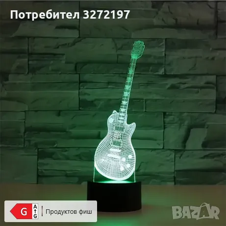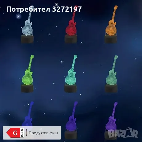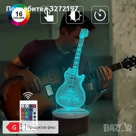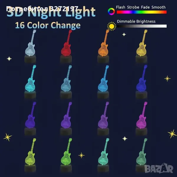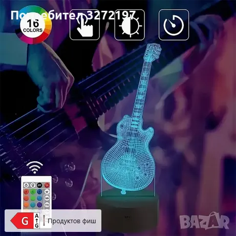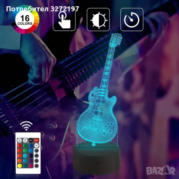 Холограмна 3D LED лампа Ел.Китара-дистанционно управление 16 цвята+други режими на управление