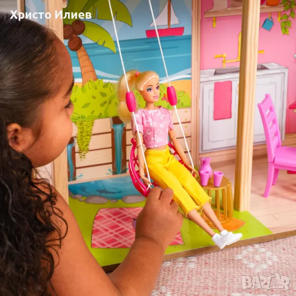 Дървена къща за кукли с аксесоари и мебели 3 етажа 104см