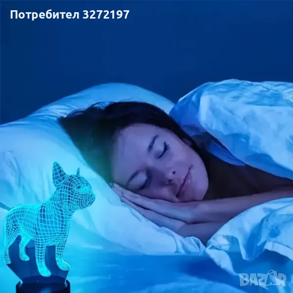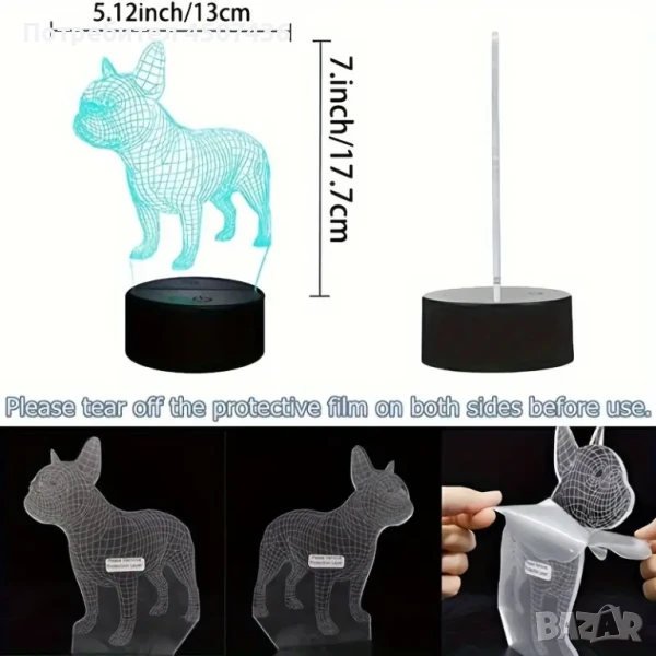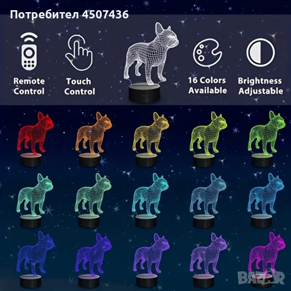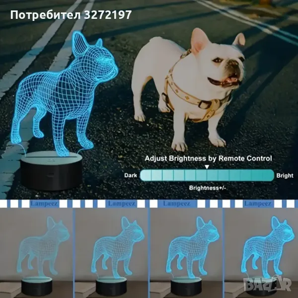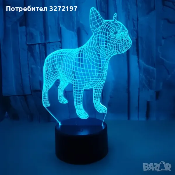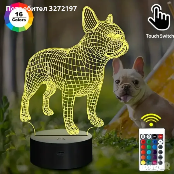 Холограмна 3D LED лампа Френски Булдог-дистанционно управление 16 цвята+други режими на управление