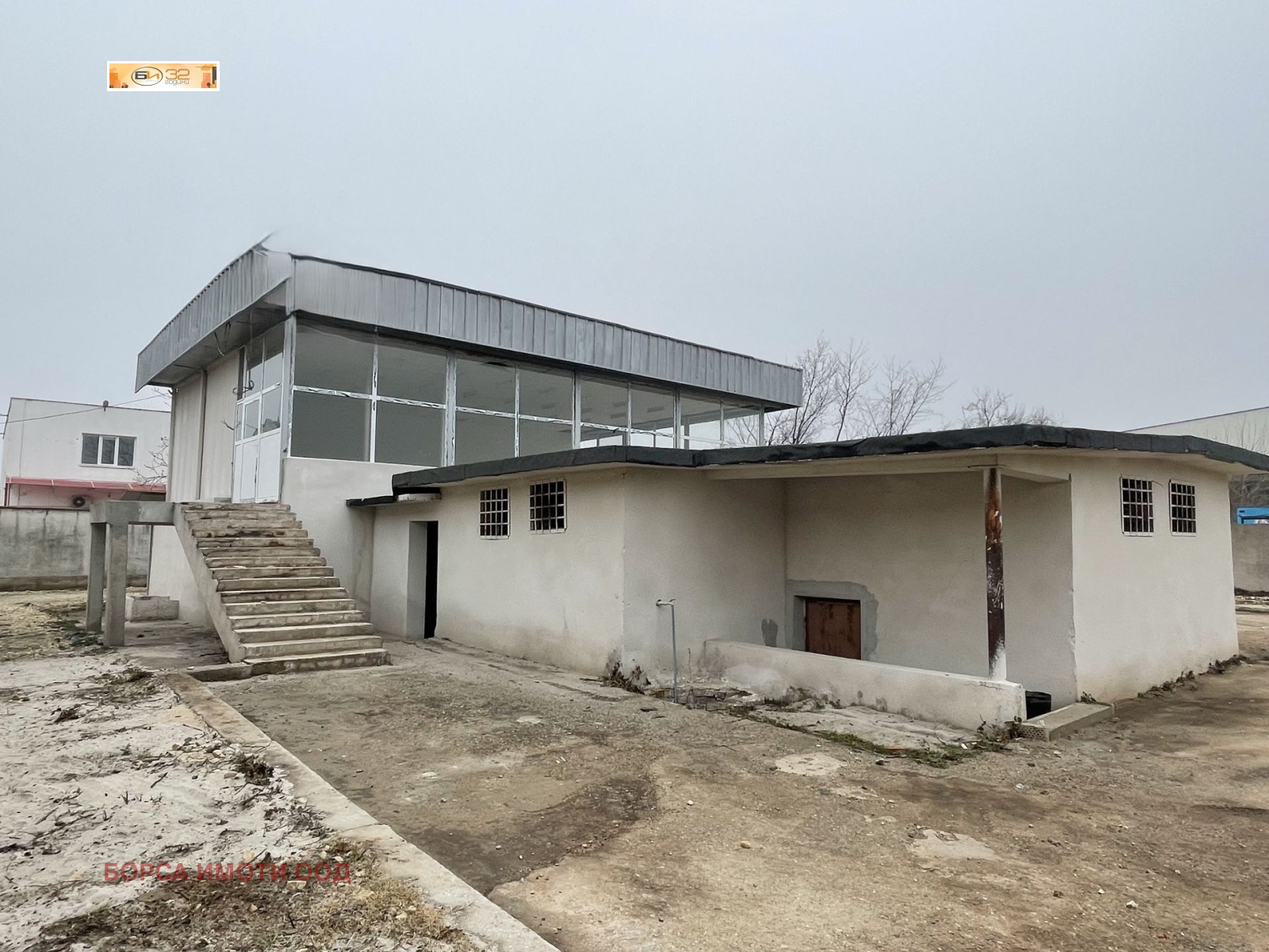 СКЛАД - ОКС, 300 кв.м., състои се от 2 сгради, които се продават с правото на строеж, сграда - търговска - 200 кв.м., височина 3.20 м, нова алуминиева дограма, стени - шпакловка, под - замазка, сграда - склад - 100 кв.м., височина - 2.40 м, стени - варова мазилка, под - замазка, трифазно ел.захранване, вода и канализация