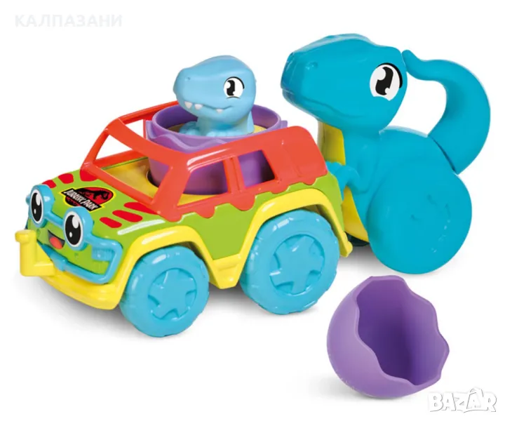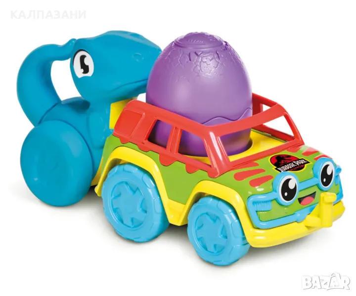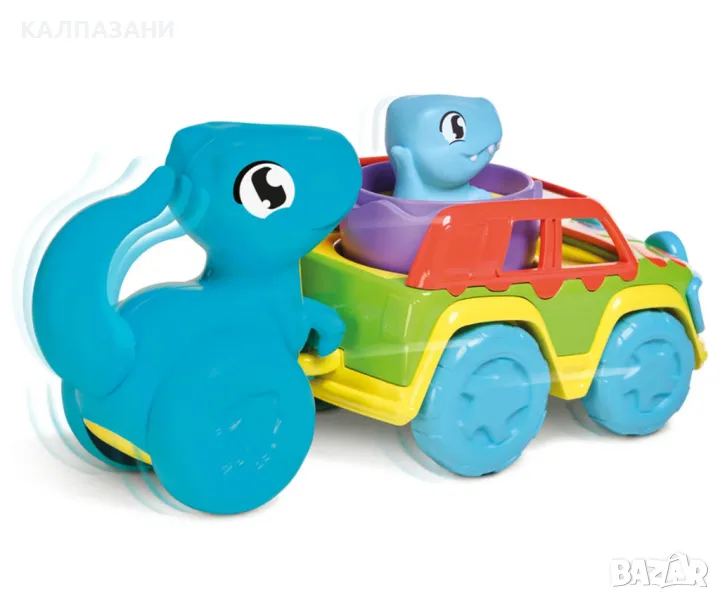 - Игра с пълзене: Поставете Бебе Динозавъра в колата, след което прикрепете Майката Динозавър към колата с натискане;