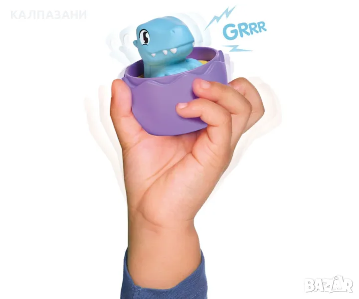 - Действие и реакция: Извадете горната черупка, разклатете Бебе Динозавъра и слушайте сладкото ръмжене;